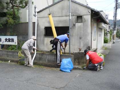 鏡山の社会福祉協議会の方たちが学校前の花壇を整備しに来てくださいました。きれいになりました。いつもありがとうございます。