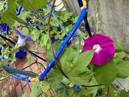 春に植えたあさがおの種がどんどん大きくなり、ついにきれいな花が咲きました。