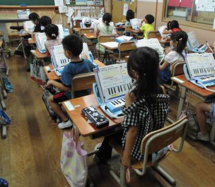 今日から音楽で鍵盤ハーモニカの演奏をしました。今日はドの音を位置を確認し、基本的な姿勢の学習をしました。