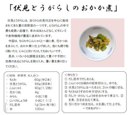 おうちで給食を作ってみよう!<伏見とうがらしのおかか煮>