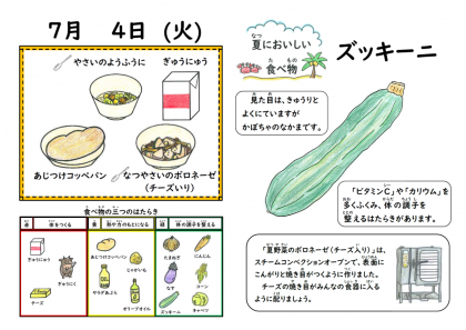 見た目はもちろん、味も最高においしいボロネーゼ!教室の食缶は、あっという間に空っぽになっていました。1年に一度だけの夏限定献立、おいしかったですね☆