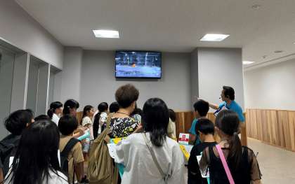 運んできたごみをおろすエリア「プラットホーム」を見学しています。