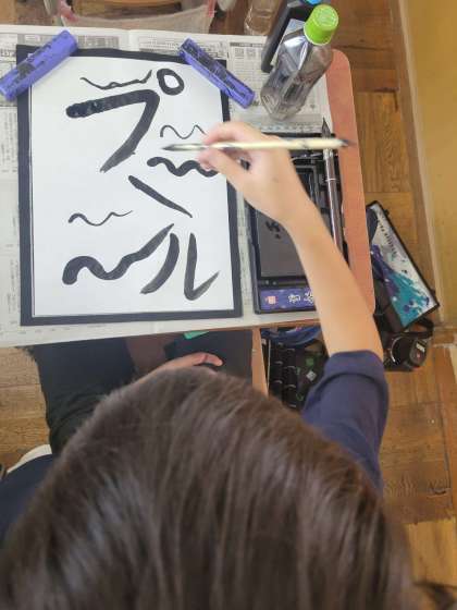 書写の時間に、夏休みの思い出を毛筆で書きました。