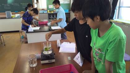 植物の葉に日光が当たると、葉にデンプンができるのだろうか、疑問をもち、実験計画をたて調べました。また、日光と葉にできる養分の関係を調べました。