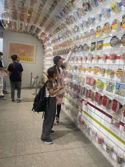 インスタントラーメン発明のエピソードや発展の歴史についても学びました。展示を見たり、クイズを解いたりしながら安藤百福の探求心について考えていました。