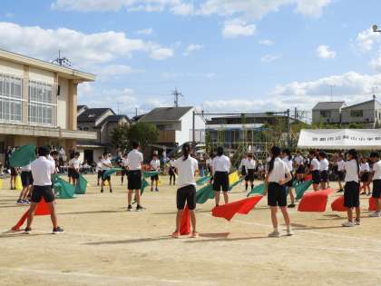 6年生の思いをこめたフラッグにみんな感動しました。
