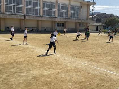 体育学習発表会も終わり、体育の学習は通常モードです。今の学習はタグラグビーです。4年生の時にもやっていますが、もう一度ルールなどを確認しながら、ミニゲームをしていました。