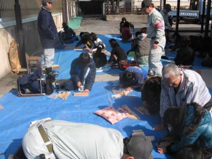 3月3日(土)に,鏡山ふれあい土曜学習推進協議会主催,自主防災会・消防分団担当、PTA支援による手作り木工ひろばが開催されました。