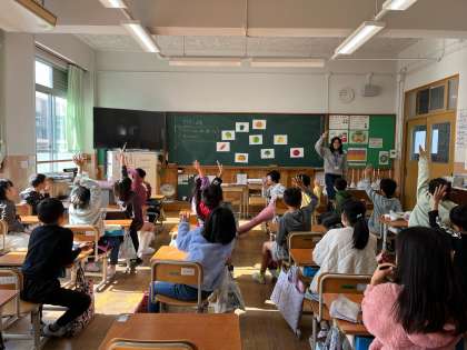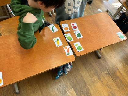 自分の好きなサラダをつくろう!ということで、サラダを英語で言ったり聞いたりする学習をしています。今週はALTの先生も一緒に学習しました。
