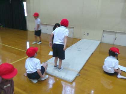 体力テストで幅跳びをしました。今もっている力を精一杯発揮することができました。