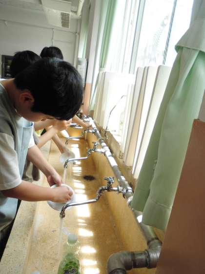 おいしくいただいた後は、後片付けまで力を合わせて取り組みました。