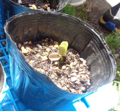 理科の学習で育てているツルレイシに芽が出始めたので、観察しました。これからどのように成長していくのか楽しみです。