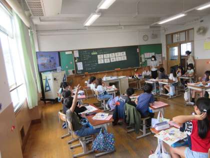 一日の生活や活動の言い方をALTの先生と一緒に学習しました。