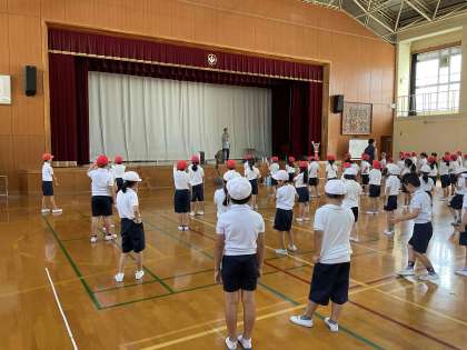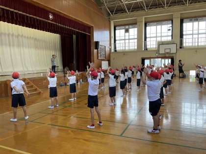 体育学習発表会にむけて取り組みを始めています。最初は見よう見まねで踊っている姿がありましたが、少しずつ自分たちで声をかけて踊る姿が見られるようになってきました。