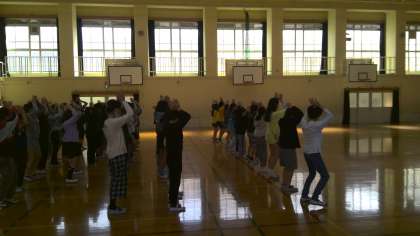 明日の1年生を迎える会に向けて学年全体で取り組みました。