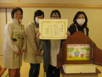 読み聞かせの会(クローバー)のみなさんが,本年度も鏡山の子どもたちのために,様々なお話の読み聞かせをしてくださいました。本を通しての温かいふれあいが,子どもたちの心を豊かにしてくれます。その活動に対して,12日(火)中間休みに,感謝状の贈呈式を行い,感謝の気持ちを伝えました。本当にありがとうございました。