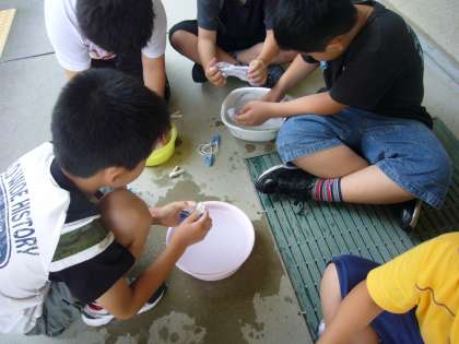 梅雨時の洗濯は本当に大変です。洗濯物は乾かないし,何となくすっきりしませんね。今回の実習では靴下の片方を手洗いで,もう片方を洗濯機で洗いました。やっぱり,洗濯機で洗うより,手洗いのほうがきれいに洗い上がりました。何にも考えずに平気で汚していた靴下も洗濯の大変さが分かると,汚さないように気をつけるようになりますよね。日ごろのお母さんの大変さがよく分かったことと思います。
