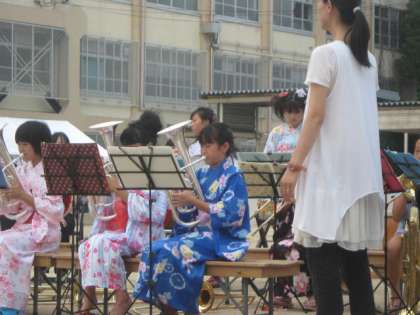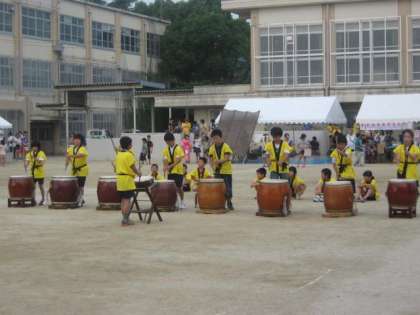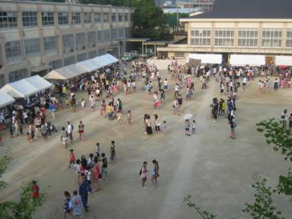 第15回鏡山こども祭が,鏡山こども祭実行委員会主催,鏡山自治連合会・各種団体共催のもと,27日(土)午後4時より,鏡山小学校で盛大に行われました。オープニングを飾るふれあいコンサートでは,鏡山小学校・金管バンドクラブのポップスの演奏や和太鼓クラブのにぎやかな太鼓が披露されました。花山中学校吹奏楽部からは,軽快なリズムにおしゃれなメロディーの楽曲が演奏され,祭を大いに盛り上げました。5時から8時まで,やきそば・冷やしうどん・フランクフルト・かき氷をはじめ,さまざまなお店が出され,6年生はプラ版のお店を出しました。楽しい夏の一日でした。