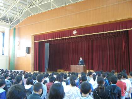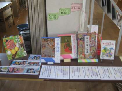 それにちなんで,本校の名前である「鏡山」についてと,地名である「血洗い」について,山口先生からの話がありました。また,図書室に古典コーナーが作られています。ぜひ,利用してください。
