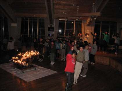 4日目の最後の活動はキャンドルファイヤーです。代表の子どもたちが、火の神様から授かった火を、ろうそくに灯していきました。