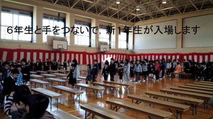 そんな6年生にエスコートされて,新1年生が入場してきました。