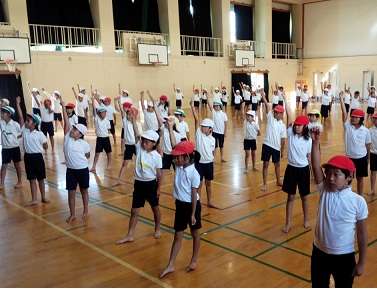 体育館で動きを確かめ,運動場で思いっきり体を動かして,走ったり踊ったり