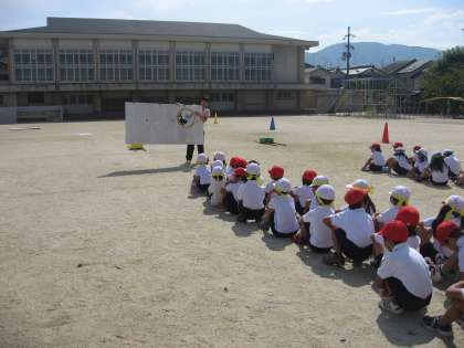 初めての運動会に向けて1年生は,汗を流しながら一生懸命運動会の練習に励んでいます。「かがみやまウォッチ」では,妖怪ウォッチの音楽に合わせて体全体を使って楽しく踊ります。左右の向きを合わせたり,掛け声を合わせたりすることが難しいのでがんばって練習しています。