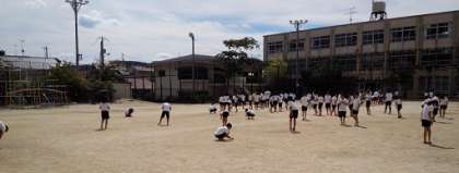 掃除時間に,6年生が率先して運動場の石拾いを行いました。