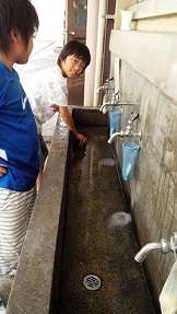給食室横の手洗い場です。