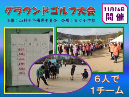 11月16日(日),百々小学校で少年補導委員会主催の「グラウンドゴルフ大会」がありました。