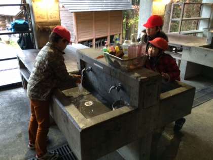 パンにキャベツとソーセージをはさみ,アルミホイルで包んだものを牛乳パックの中に入れて焼き上がったら出来上がり。