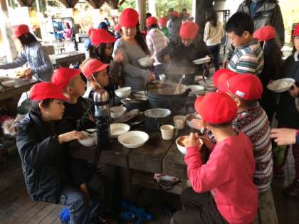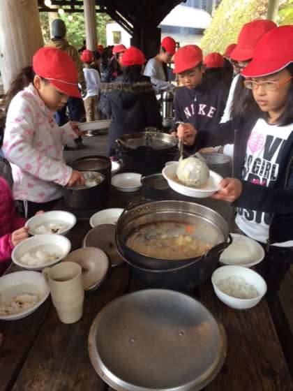 献立は野外炊事で作ったカレーやクリームシチューなどです。