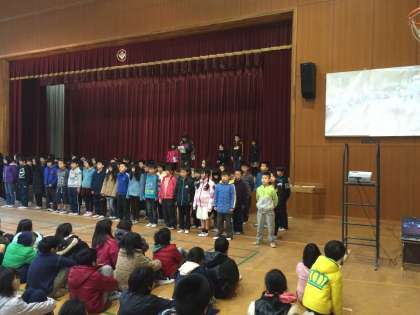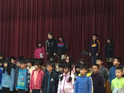 全校児童の前で,堂々とした姿で素敵な発表をすることができました。