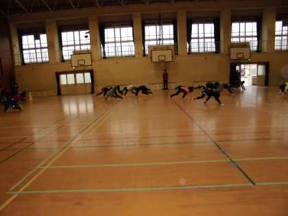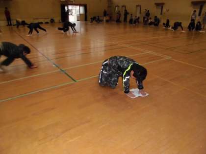 ランニングが終わったあと,教室に戻ってからの準備,朝学習がてきぱきと行えるようになりました。雨の日も体育館でトレーニングを行います。