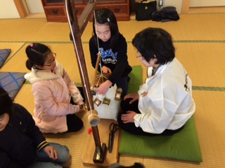 6日,4年生の子どもたちが「くみひも」の体験学習を行いました。