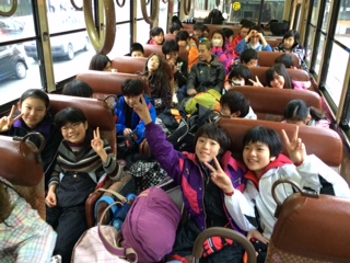 午前7時。元気よく学校を出発しました。