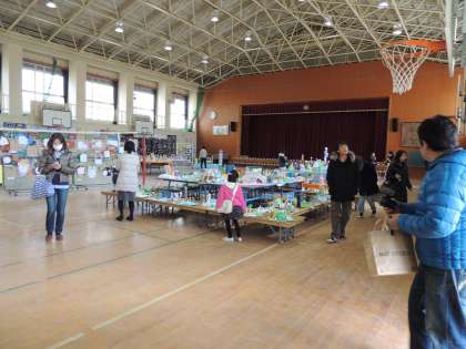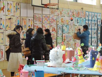 「平面作品」と「立体作品」の2点を保護者や地域の方々に鑑賞していただいています。