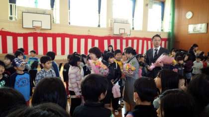 児童代表として5年生が,離任される教職員の方へメッセージを送りました。