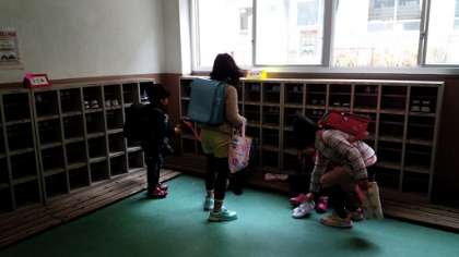 靴箱の場所,教室の場所,分からないことも多いですが,上級生が優しく声をかけてくれます。