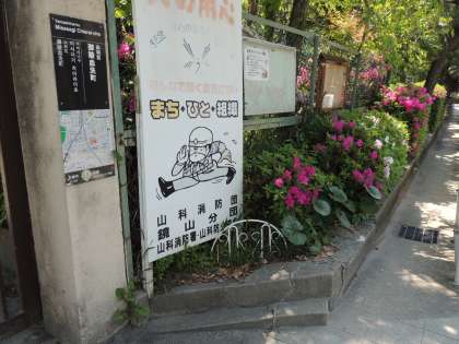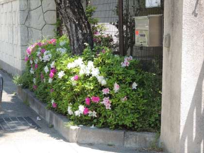 校門の両側にはつつじの木がたくさんあります。