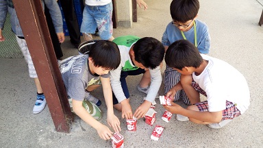 今,鏡山小学校では,「飲み終えた牛乳パックをきれいにたたんで片づける」ことをがんばっています。
