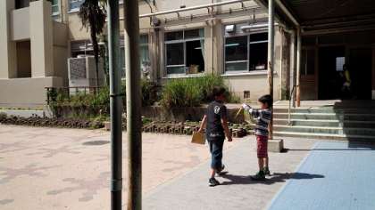 いろいろな時間に,運動場や中庭に出てきて,担当ごとに調べます。