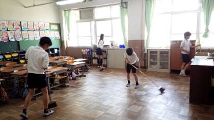掃除時間です。頑張って掃除をしている6年生です。