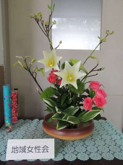 鏡山地域女性会の皆様に花を生けていただきました。
