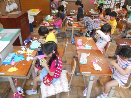 昨日,図工の単元「チョキチョキかざり」の学習として,はさみを使って飾りづくりをしました。紙を折ったり,重ねたりしながら取り組みました。紙を広げて,出来上がった形を見て喜ぶ姿が見られました。
