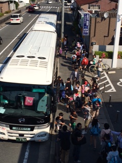 ホンダ前まで歩き,その後2つのバスに分かれて乗車します。