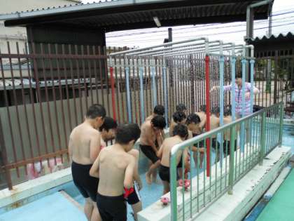 水温,気温とも基準値をクリアしたので,子どもたちは,水着に着替えてプールにやってきました。