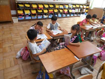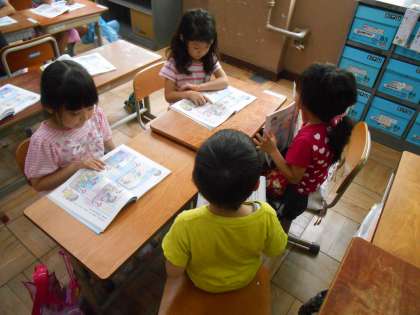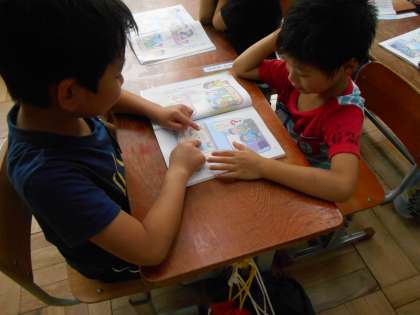 今日の道徳の時間は,「わたしたちの道徳」を活用して,よい行動とは何かについて挿絵を見ながらお友だちと話し合いました。自分の意見をはっきり相手に伝えられる子もいれば,まだまだ恥ずかしがっている子も見られます。話し合い活動は,1年生にとって難しいものですが,少しずつ慣れていけるようにみんなで頑張っていきたいと思います。