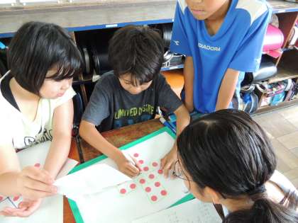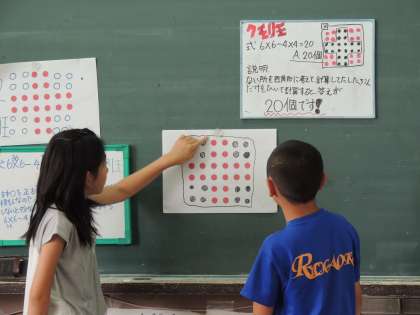 今日の算数の時間では,個数の求め方を工夫して考え,式に表して説明することをねらいとして学習を進めました。