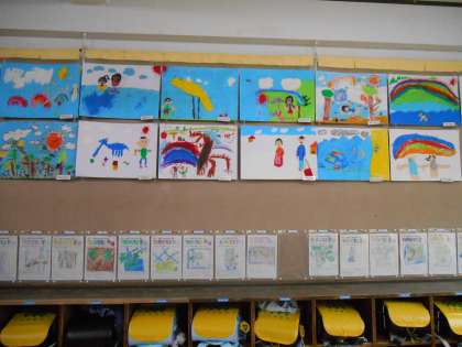 先週から取り組んでいる図工の単元「せんせい あのね」の作品が完成しました。今日はみんなで仕上がった作品を掲示し,鑑賞し合いました。教室に掲示しておりますので,本校にお立ち寄りの際はぜひご覧ください。